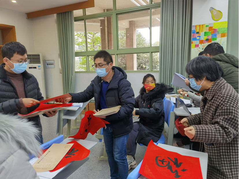为喜迎2022年的到来,12月28日下午,成人动漫 分工会在101会议室举行“寅虎送福迎新年”活动,学院党政、工会领导为全体老师送上书法手写“福”字。 活动现场墨香四溢,暖意融融,洋溢着节日喜庆气氛,一张张喜气洋洋的福字,表达了成人动漫 老师们对未来美好生活的期待