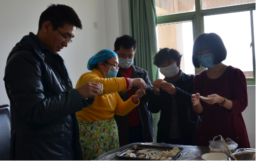 在学院楼开展“包饺子”游艺比赛活动,全院老师参加此次活动。