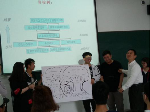 马洪波主任围绕企业社会工作项目设置,通过案例分析、项目实训等方式为学生们展示了企业社会工作项目设计的理论知识和解决方案。在课题中,他引入了问题树和目标树的训练方法,围绕“员工离职率高”等企业焦点问题,引导学生进行小组分析与讨论。