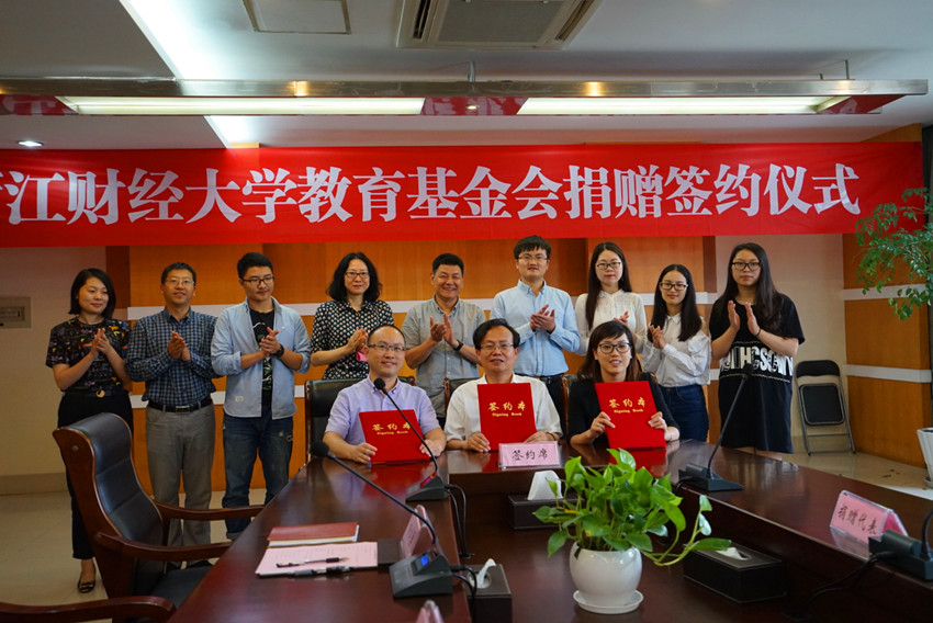 校友捐赠60万元设立的“天平公益行基金”签约仪式在下沙校区举行。“天平公益行基金”的执行主席、北京盈科(杭州)律师事务所高级合伙人吴晓洁,北京大成(杭州)律师事务所律师邓国庆,校教育基金会副理事长兼秘书长、副校长黄建新,计财处、成人动漫