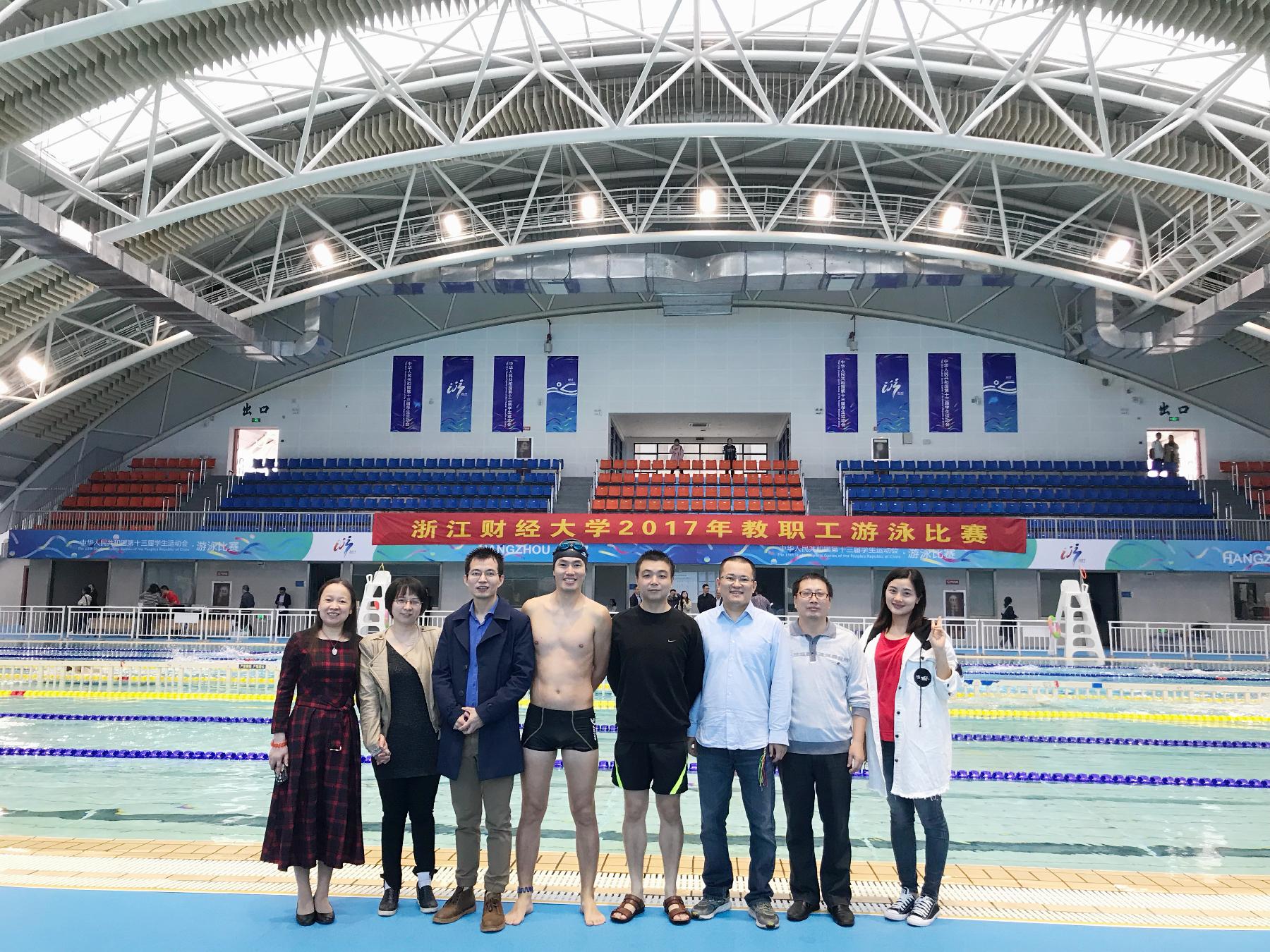 分工会组织了王俊、严城、卢成仁、钱炜江、曹璋、杨琴、王婷七位老师参加比赛。在本次比赛设定的十二个项目中,七位老师参加了50米双人拖带、男女50米自由泳、男女50米蛙泳、男子50米仰泳、女子200米自由泳、男子100米蛙泳和4×50米混合泳共九项比赛。在参加的各项比赛中,各位老师不仅在绝大多数项目中都获得了前八名的优异成绩,为学院总分做出贡献;王婷老师还获得了女子50米蛙泳第一名、女子200米自由泳第二名的好成绩,严城和卢成仁老师分别获得50米仰泳和蛙泳第三名的不俗战绩。尤其值得赞赏的是曹璋、钱炜江、严城和卢成仁四位老师组成的4×50米混合泳成人动漫