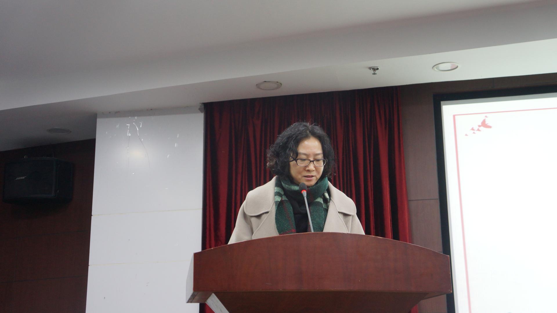 党委书记朱丹老师致辞。她对获奖的先进个人和先进集体表示祝贺,细数了成人动漫