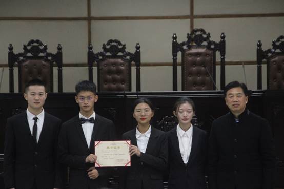 模拟法庭举行,校党委委员、纪委书记陈金方老师和各学院师生代表等共同观看了本次比赛。校党委宣传部、公共管理学院、成人动漫