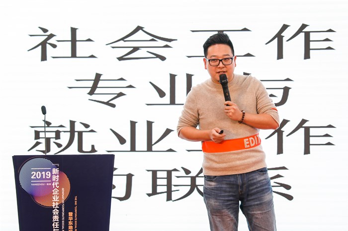 在下午的“企业社会责任与社会工作”主题分论坛中,中国劳动关系学院教授张默讲述了构建职工社会心理服务体系与工会参与社会治理的方法,介绍了新生代农民工群体观念的转变以及如何针对其开展社会心理服务。