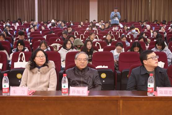 党委书记朱丹老师向普法联络员代表授旗并宣布法律文化节暨普法宣传月开幕。随后,校团委书记陆颋浩对学校普法工作先进典型进行了表彰,为各学院普法联络员颁发聘书。