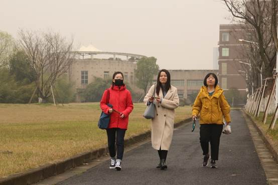 教职工的热烈欢迎。参加活动的教职工结伴而行,一路欢声笑语。大家在感受集体运动温暖的同时,也欣赏了校园的美丽春景。