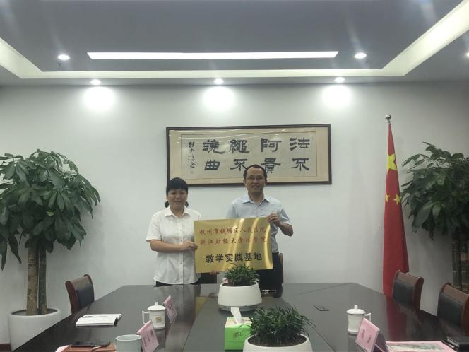 院战略合作框架协议签约仪式。杭州市钱塘区人民法院院长余晟、副院长吴文峰、政治部主任许俊、办公室副主任曾祥龙出席签约仪式。