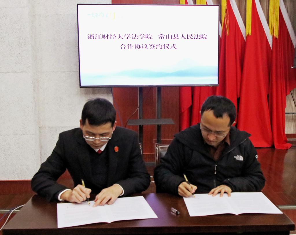 院长童志锋、党委书记朱丹、副院长唐勇赴常山县人民法院,参加法律教学实训基地揭牌暨合作协议签约仪式。常山县人大常委会党组书记翁旭东,常山县人民法院党组书记、院长舒燕华等出席仪式。