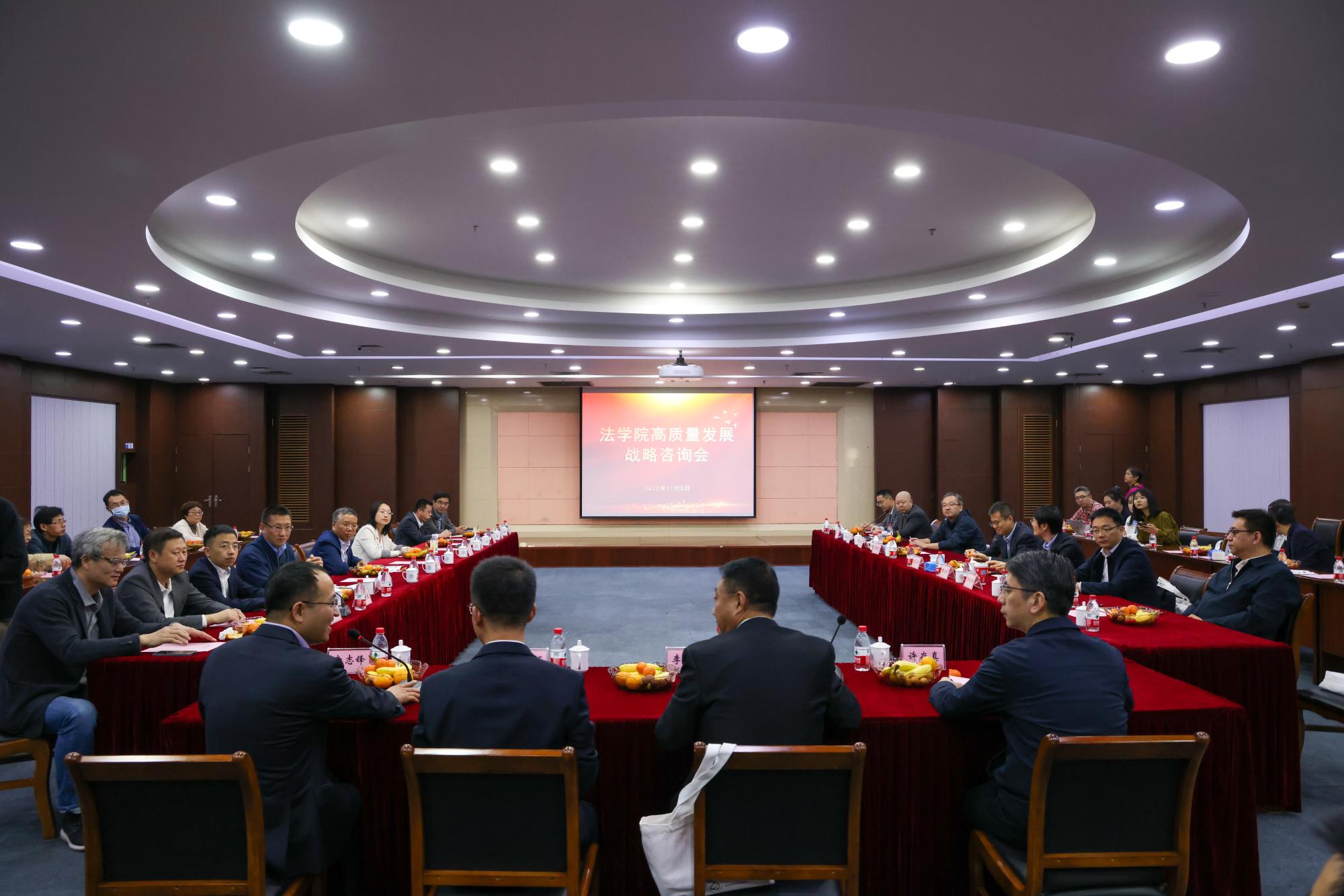 高质量发展战略咨询会在学术中心二楼多功能厅召开,浙江省人民检察院、浙江省社会科学院、浙江省法学会、浙江省委党校、杭州慈善总会、省内知名律师事务所及浙江工商大学等兄弟院校受邀参加咨询会。浙江水利水电学院副校长李政辉教授、浙江省人民检察院政治部副主任许存真、综合指导处副处长胡涛、浙江省法学会研究部部长楼杰科、浙江省社会工作协会副会长马良教授、中共浙江省委党校社会学文化学教研部主任林晓珊教授、微笑明天慈善基金会理事长吴伟、中国计量大学宣传部部长陈永强教授、浙江省社会科学院智库建设和舆情研究中心主任唐明良教授、浙大城市学院成人动漫