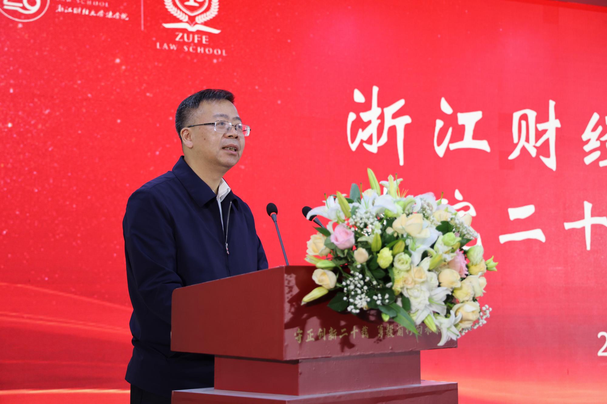 建院20周年庆祝大会在下沙校区举行。校党委书记李金昌会见了杭州市人民检察院党组书记、检察长叶伟忠一行。校党委副书记黄建新、副校长李占荣与来自浙江省检察系统、行业协会、律师事务所及兄弟院校领导、校友师生代表出席庆祝大会。