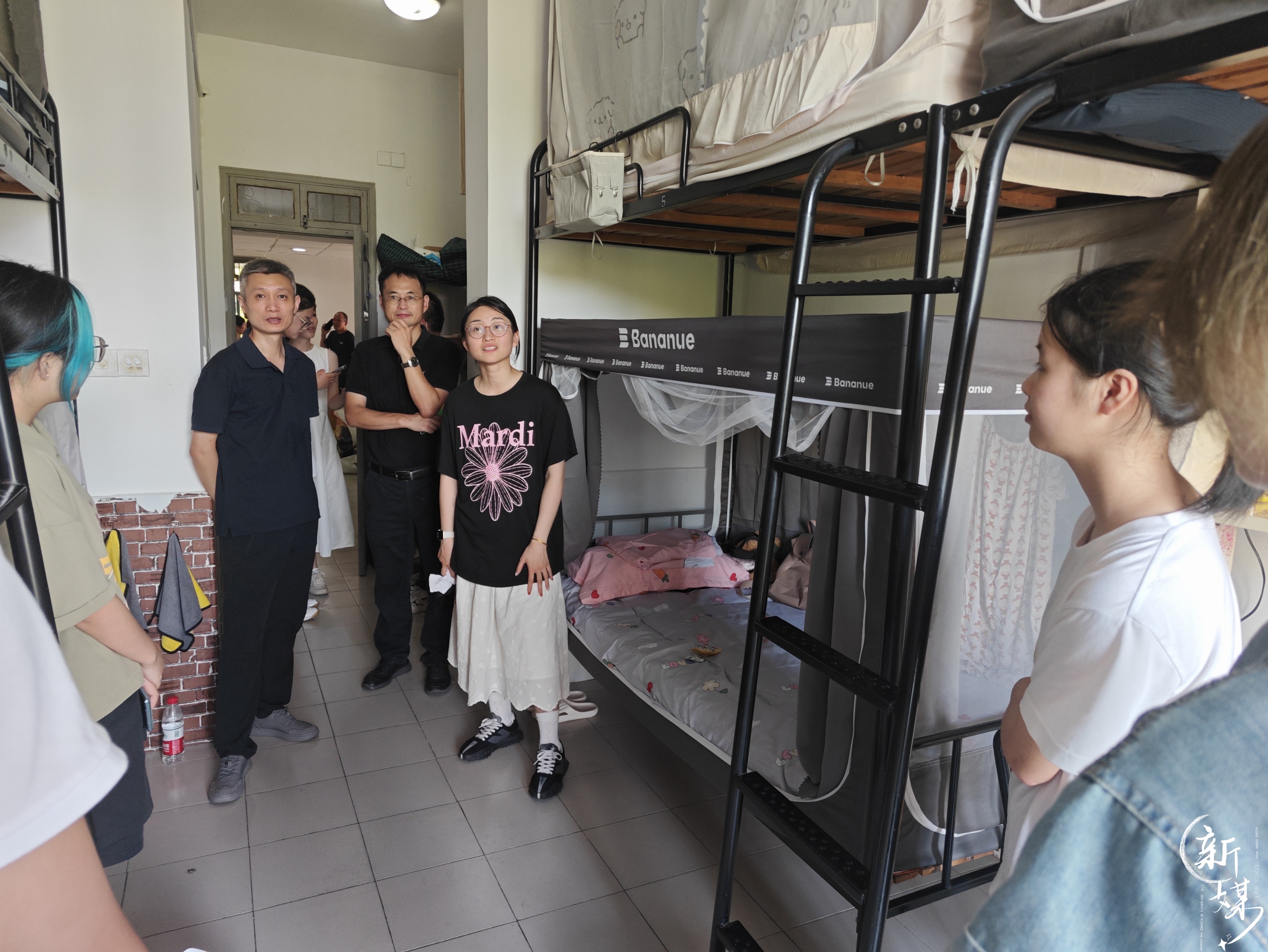 院长唐勇、党委书记丁洪、副院长陈建胜、党委副书记胡哲以及2024级全体辅导员逐一走进宿舍,亲切地与新生交谈,询问学生适应情况,并鼓励大家尽快融入集体生活。同时详细了解了宿舍的设施配备情况,听取了学生们的意见与建议。针对部分学生反映的设施老化等问题,当场联系后勤部门预约处理,确保学生能拥有舒适的生活环境。
