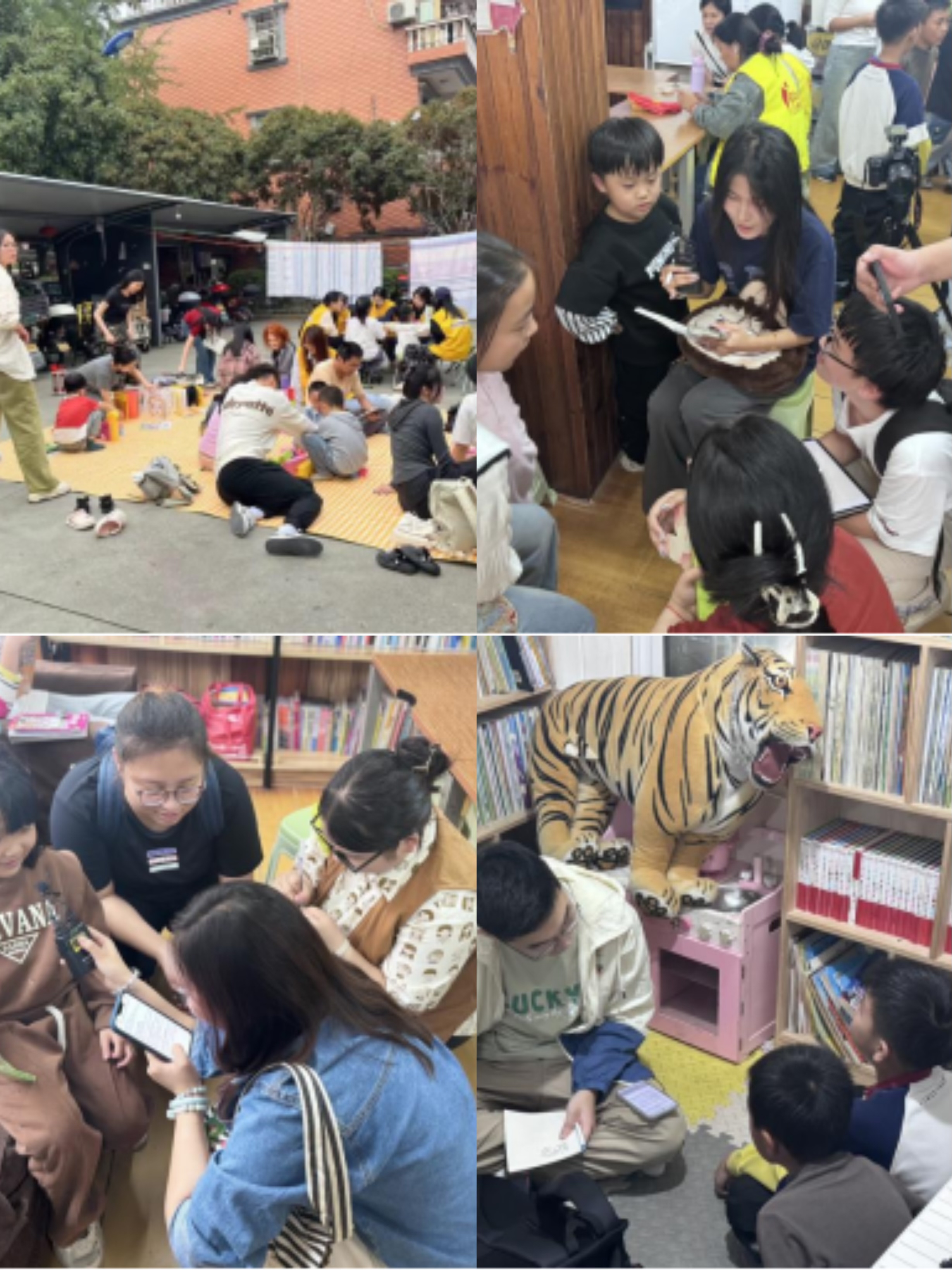 活动开始,在相关老师组织下,全体师生组成两个田野小组,分别开展户外儿童访谈游戏活动以及室内儿童随机采访活动。此次田野课堂调研活动共访谈了十余位社区儿童,年龄从5岁到11岁不等,受访儿童及其家长对成人动漫