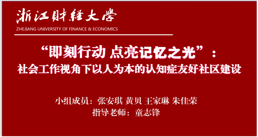张安琪、黄贝、王家琳以及朱佳荣同学组成的队伍参与了本次大赛。题为《“跨越鸿沟,共筑智慧园”——社会工作视角下以人为本的认知症友好社区建设》的案例,从背景、理论、计划、实施过程和专业反思这六个方面全面进行阐述汇报。浙江工商大学邬璇老师对此点评,并针对文本的写作和思路的串联提出了针对性建议。该案例获得特等奖。