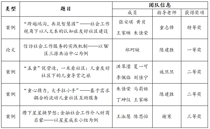 学子荣获案例特等奖1项、二等奖2项、三等奖1项,论文一等奖1项。详见下表: