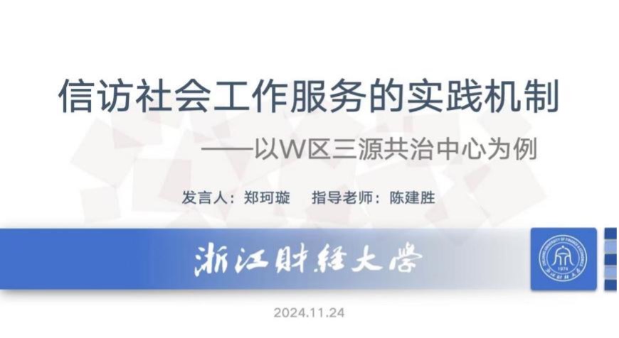 的郑珂璇同学对其论文《信访社会工作服务的实践机制——以W区三源共治中心为例》做了汇报展示。选手从问题意识、研究方法、分析框架和研究发现等方面进行了报告,并由浙江师范大学的窦媛老师点评。窦媛老师肯定了选手的论文选题具有新意,贴合当前社会工作专业的发展趋势,也指出论文进一步修改的建议,并就整合性视角与信访社会工作结合的难点提出问题。该论文获一等奖。