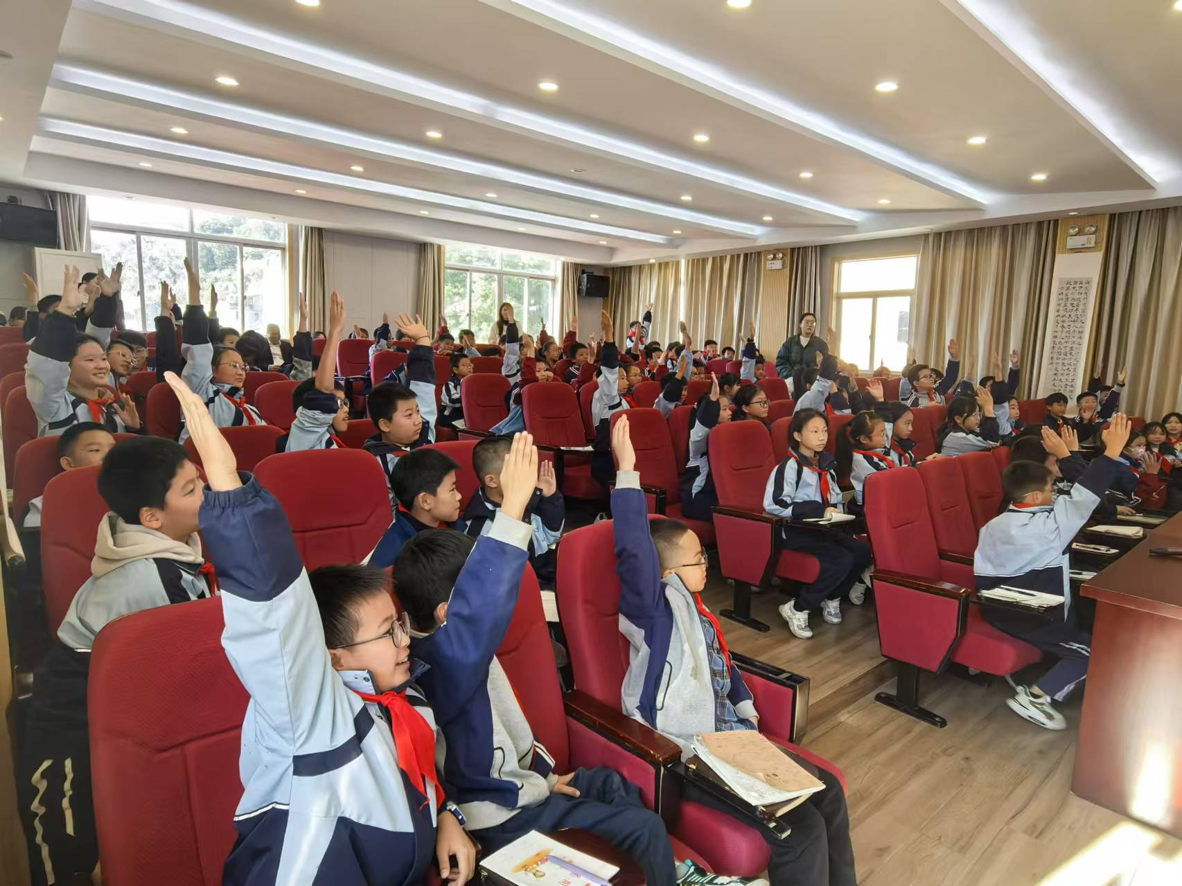 活动的高潮阶段,宣讲团紧密围绕“大中小思政一体化”的核心理念,以“爱国主义视角下的网络文明——拒绝网络暴力,共筑法治长城”为主题,巧妙融合爱国主义教育与普法宣传。通过一系列贴近生活的案例剖析,学生们深切感受到了网络言论背后的责任重大与爱国情怀的紧密相连。宣讲中穿插的趣味问答和互动环节,不仅引导学生们学会在数字时代正确表达自我、理性辨识信息真伪,还鼓励他们以积极向上的姿态展现青少年的网络风貌,为爱国主义法治教育增添一抹亮色。