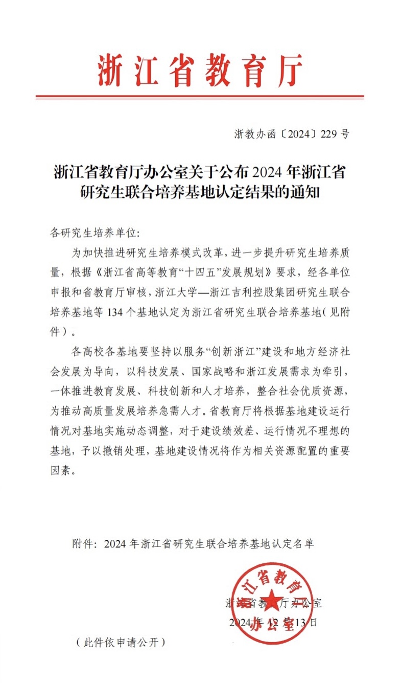 近日,浙江省教育厅办公室公布了2024年浙江省研究生联合培养基地认定结果,成人动漫