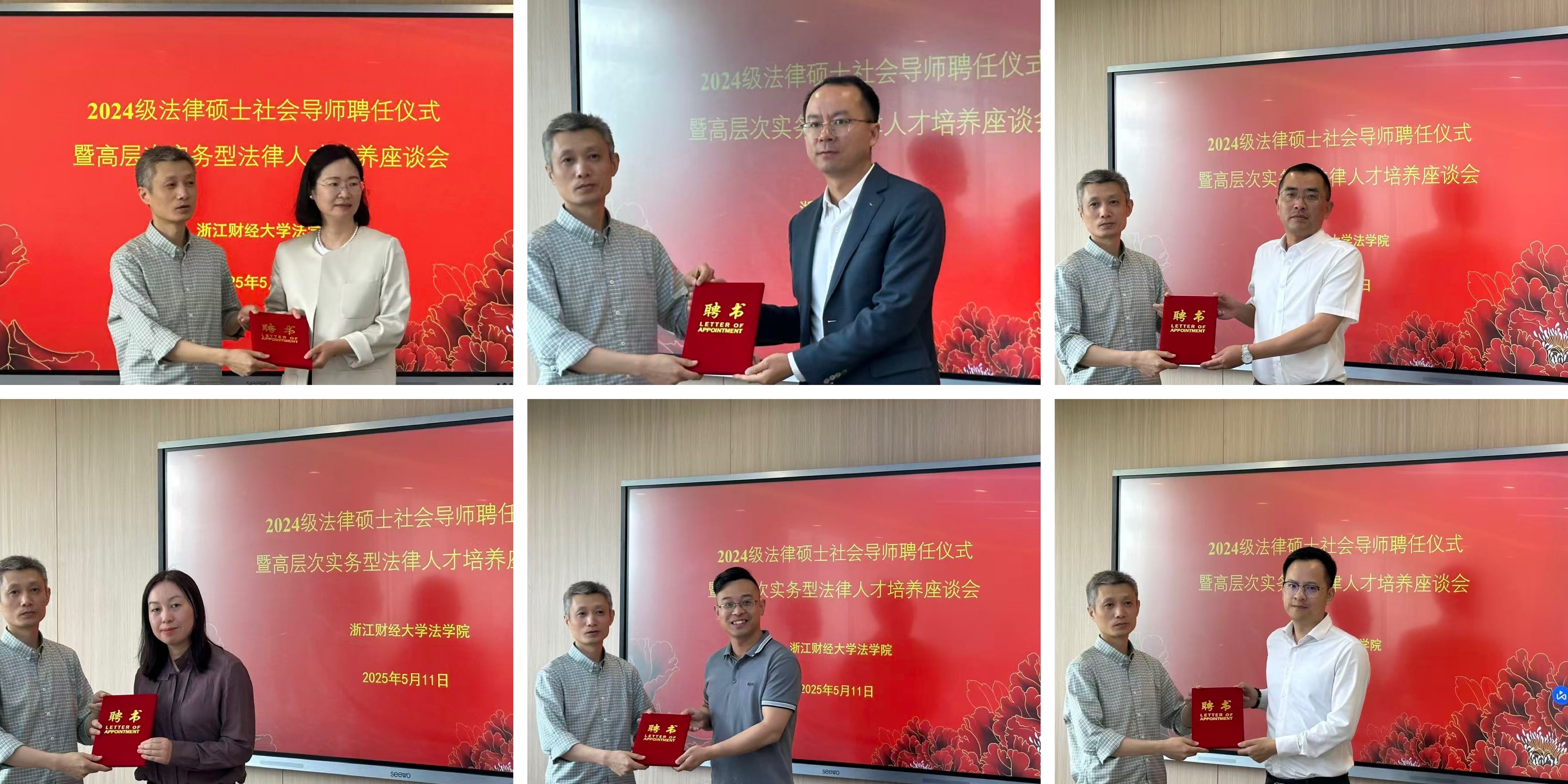 丁洪书记代表学院向社会导师表示热烈欢迎与诚挚感谢。他强调,法律人才不仅需要扎实的专业知识和解决复杂法律问题的实战能力,更需具备敏锐的行业洞察力与坚定的职业责任感。实务导师的引入正是为了破解培养过程中理论与实践衔接的难点,通过行业精英的“手把手”指导,构建复合型人才培养的协同机制。致辞结束后,丁洪书记为新聘任的社会导师颁发聘书并合影留念。