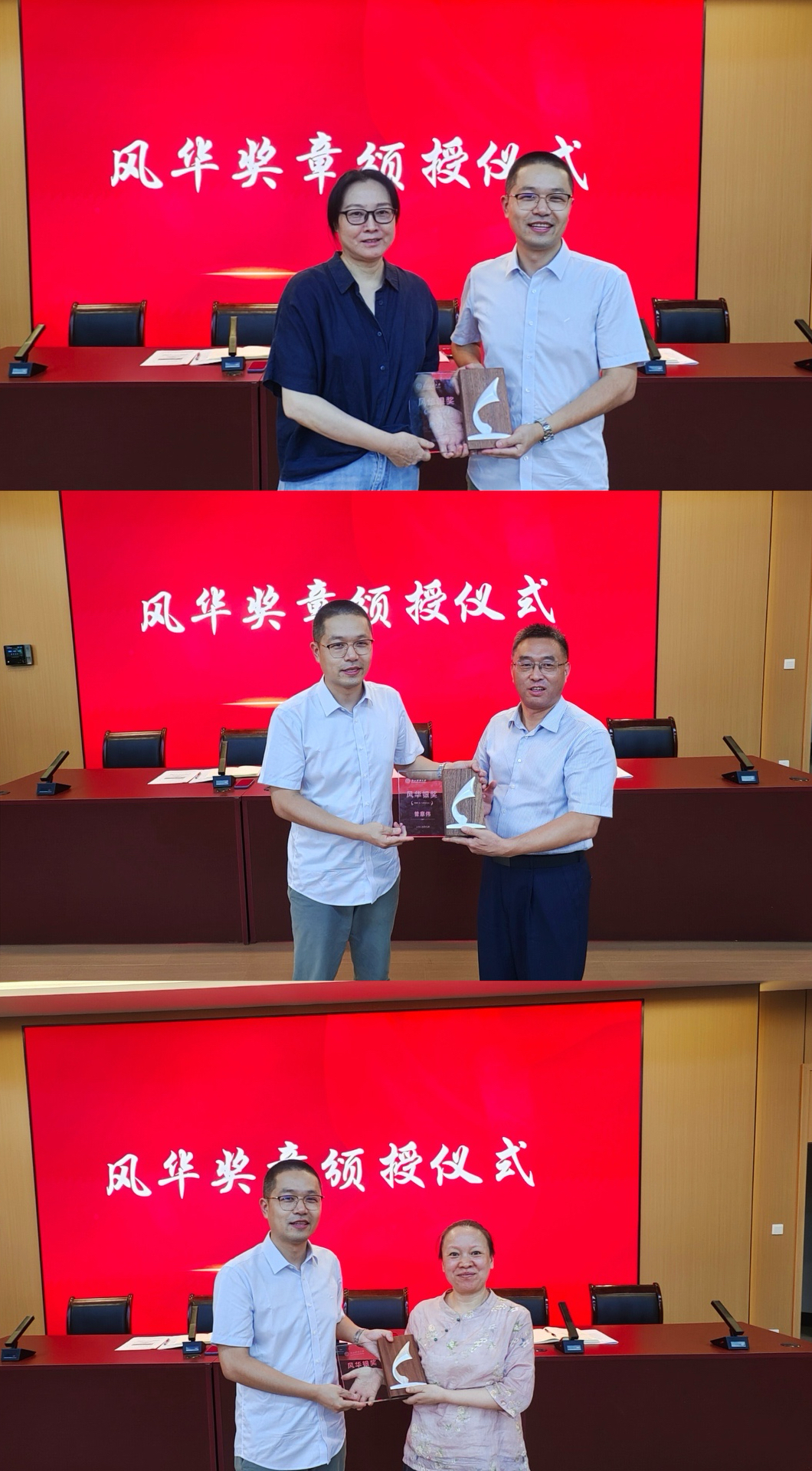 院长唐勇为入职财大三十年的老师颁授“风华”奖章银奖,为入职财大二十年的老师颁授“风华”奖章铜奖,并代表学院感谢这些老师多年的付出与耕耘。