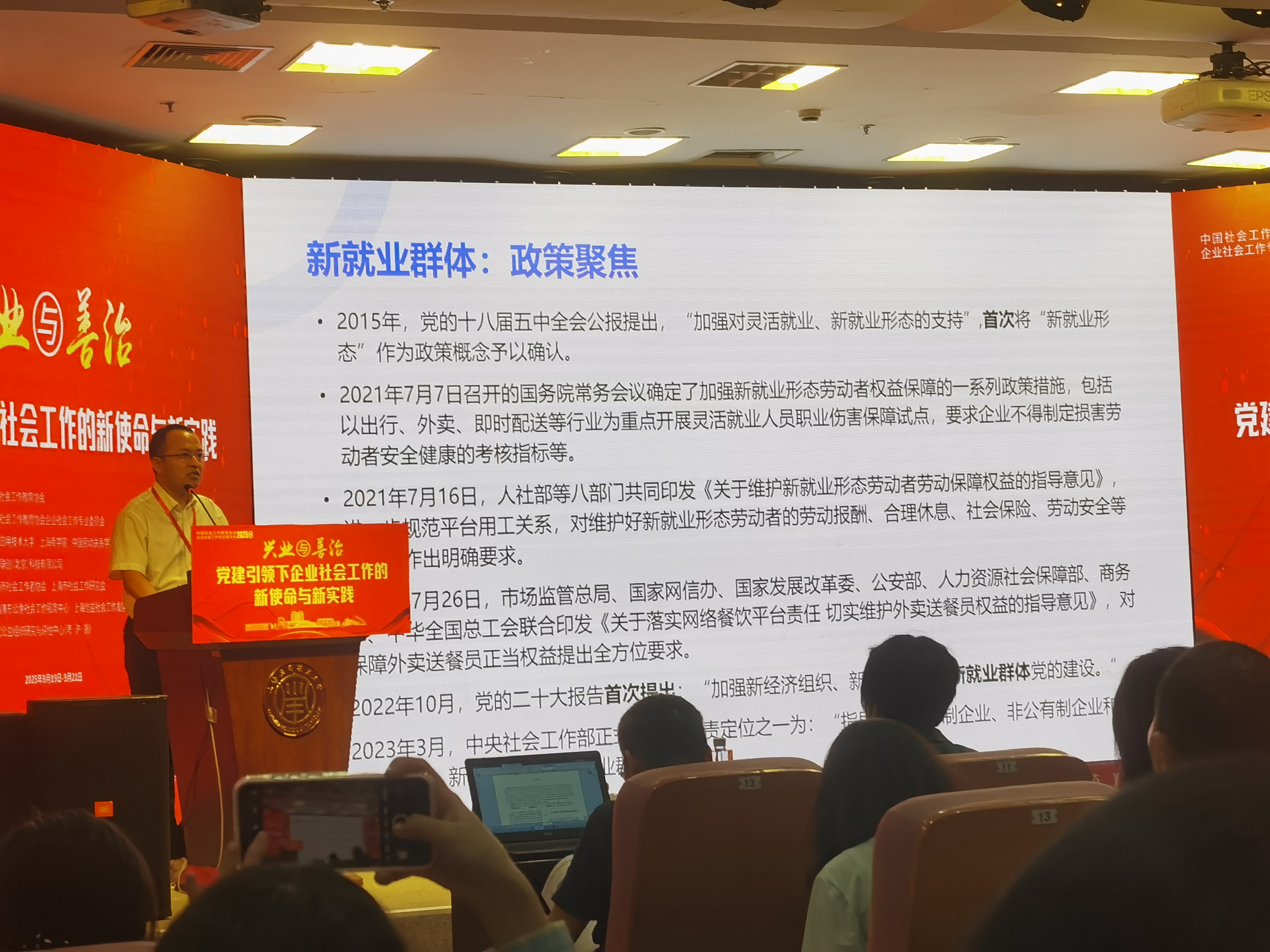 聂玉梅副教授、社会工作系学生温珂(研究生)、郑旖蕾(研究生)入选参与本次论坛的大会发言。温珂同学的论文《企业社会工作服务新就业群体的路径探索--基于生态系统理论》和郑旖蕾同学的论文《平台经济从业者劳动权益保障的社会功能做介入策略》(指导老师:聂玉梅)荣获本次大会“优秀论文”称号。