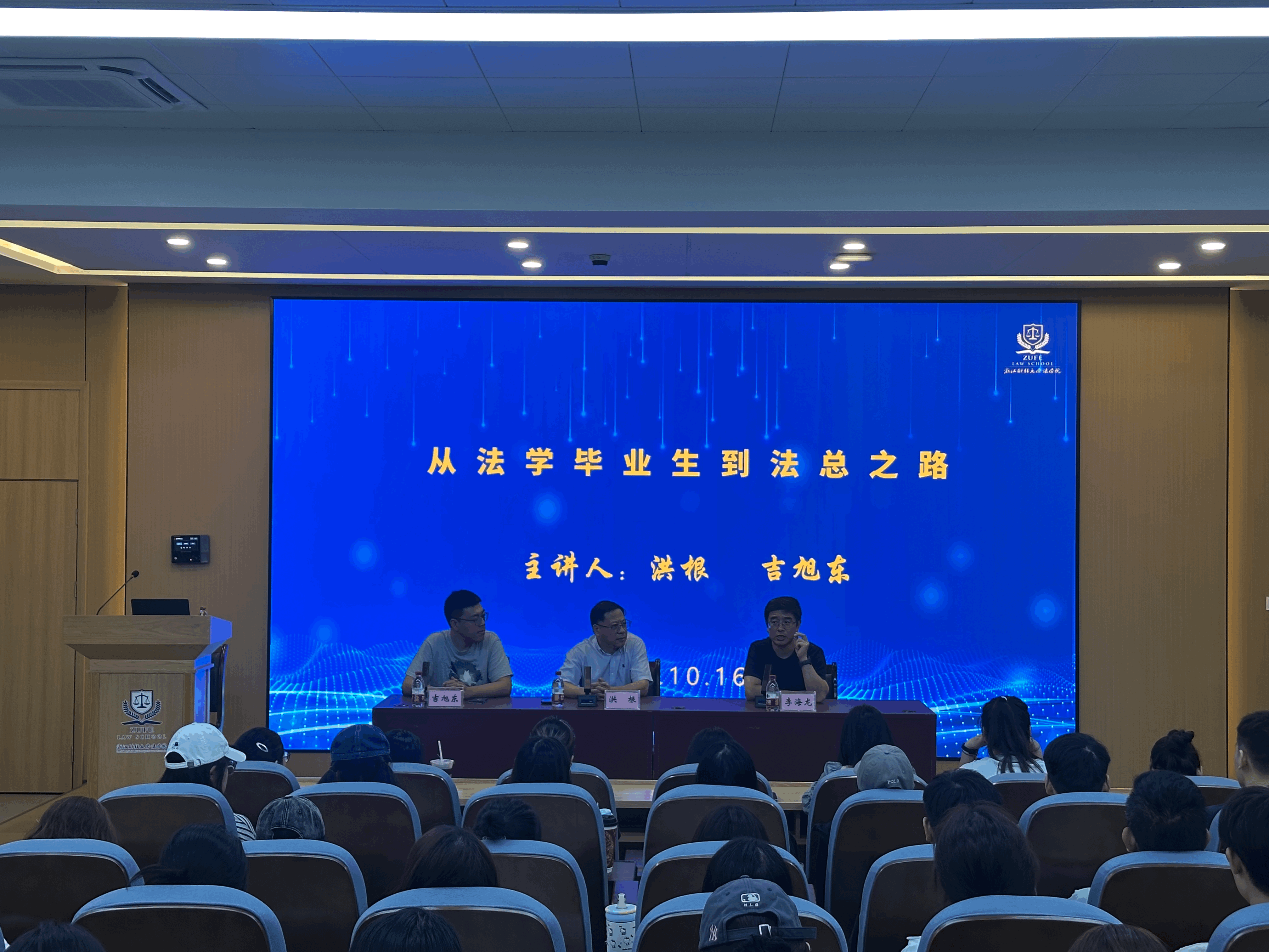 讲座围绕法学毕业生的职业发展路径、社会对法律人才的素质要求以及法务总监能力体系的构建展开,内容兼具专业性与实践性,为在座同学带来深刻启发。