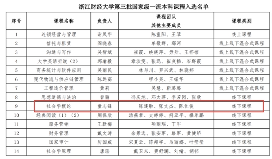 童志锋教授主持的《社会学概论》课程入选国家级一流线下课程。学院实现国家级一流课程零的突破。