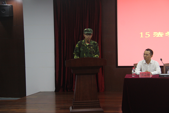 紧接着,老生代表13级法1班吴甜发言。她希望同学们能够调整自我,找准定位,适应新的环境、新的学习方式。除此以外,她还结合了自身的经历与体会,希望新生能有所借鉴,战胜未知与迷茫。随后,新生代表15级法1班程雨发言,他提出大学生活“重在选择,难在践行”,用充满理性的言辞诠释选择的意义,用洋溢着希望的声音共邀请新生们演绎青春的故事并祝福全体同学能够度过一段美好、充实的大学生活。再后,程雨同学带领全体新生宣誓。慷慨激昂的声音,青春笔直的背影,代表着他们为推动成人动漫