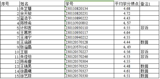 依照学生报名情况,按照1:3比例组织学生面试,即按入学来所有课程平均学分绩点排序,选择报名学生的前15名进入面试。面试顺序按学号升序排序(具体见截图)