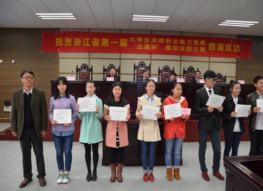 院长谭世贵教授宣布比赛结果:金华职业技术学院、浙江大学城市学院夺得了本届模拟法庭大赛的冠军。杭州电子科技大学、温州大学瓯江学院、成人动漫