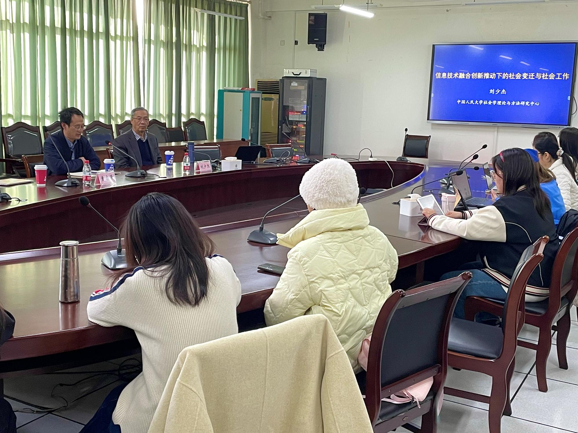 师生带来一场以《信息技术融合创新推动下的社会变迁与社会工作》为题的学术讲座。讲座由成人动漫