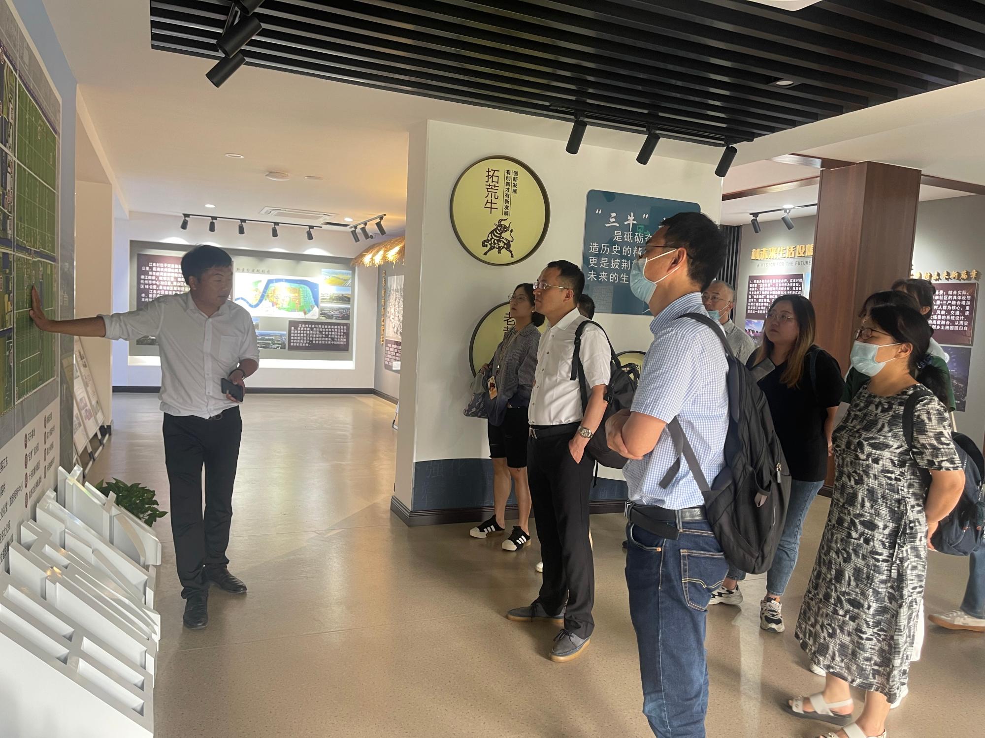 随后,大家来到江东村,实地踏看江东村村史馆、休闲活动室等,现场聆听江东村方建庆书记介绍江东村建设发展历程、便民服务举措,及其以现代农业、教育文创为主体的农科教融合发展的未来乡村产业新格局建设情况。党员们切身感受到党建引领带来的城乡新发展、新变化,更加坚定党员们不忘初心、牢记使命的信念和决心。