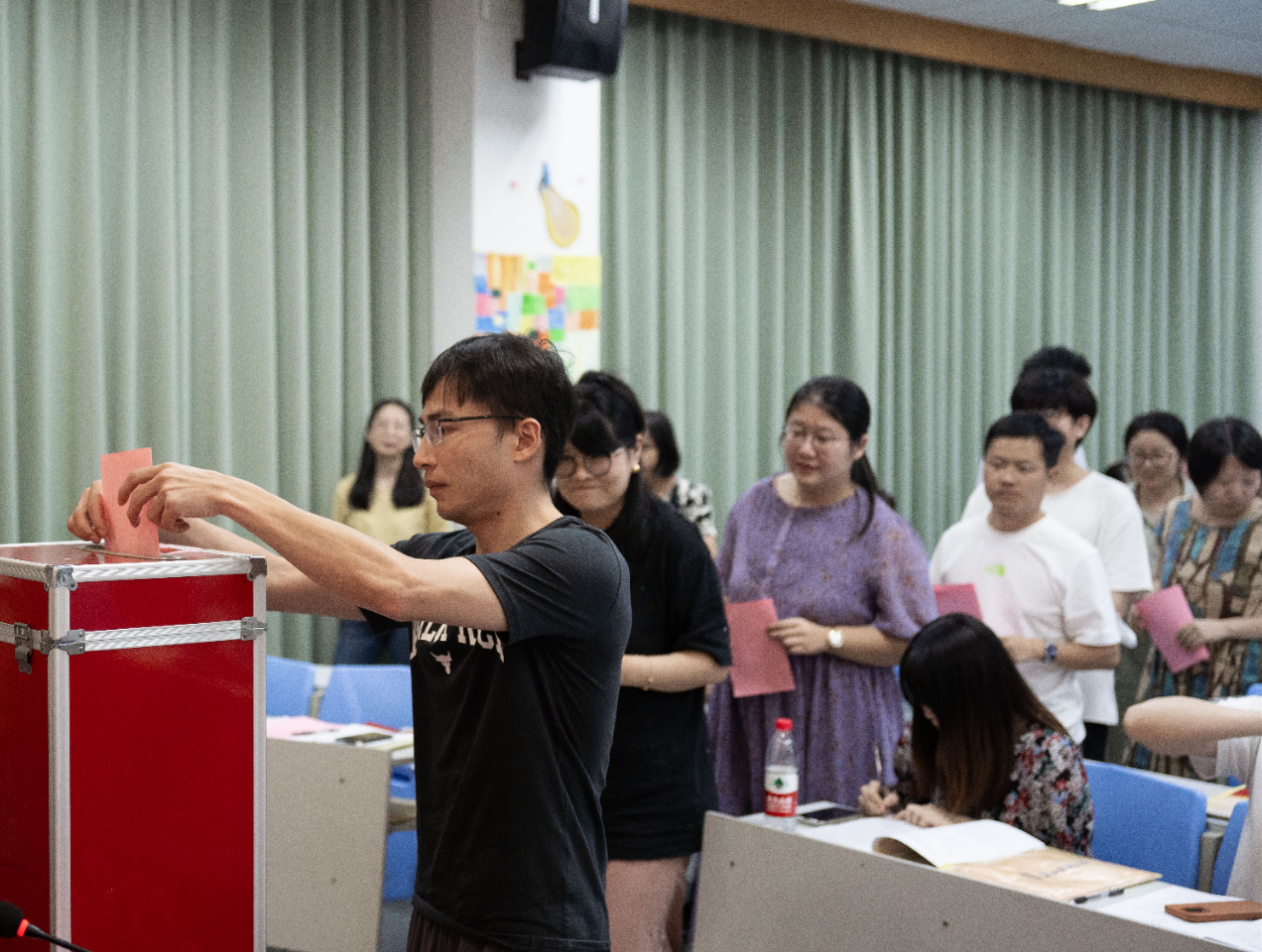 大会选举产生了出了由那桢妮、张蹇、陈波、周翎霄、黄丽萍(按姓氏笔画为序)组成的新一届教执委、工会委员会委员。