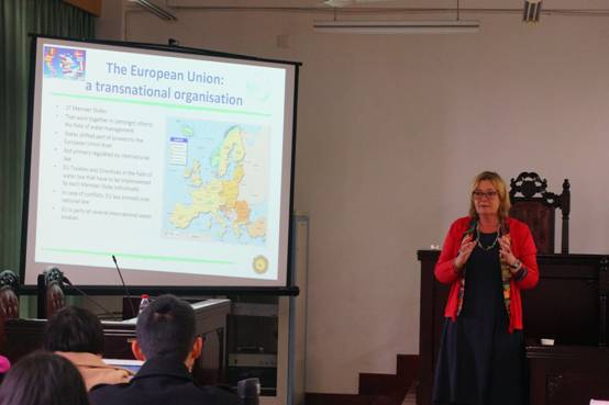 讲座中,Marleen教授从欧洲水法出台的历史入手,分析了欧洲水资源存在的问题及欧洲国家对水资源的保护措施,并着重阐述了荷兰饮用水保护的进路。Marleen教授强调,对于水资源的保护,仅仅依赖于人们的水资源保护意识是远远不够的,更多的是要借助于法律的手段达到这一目的。