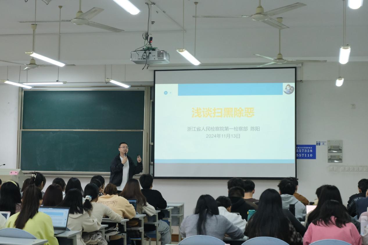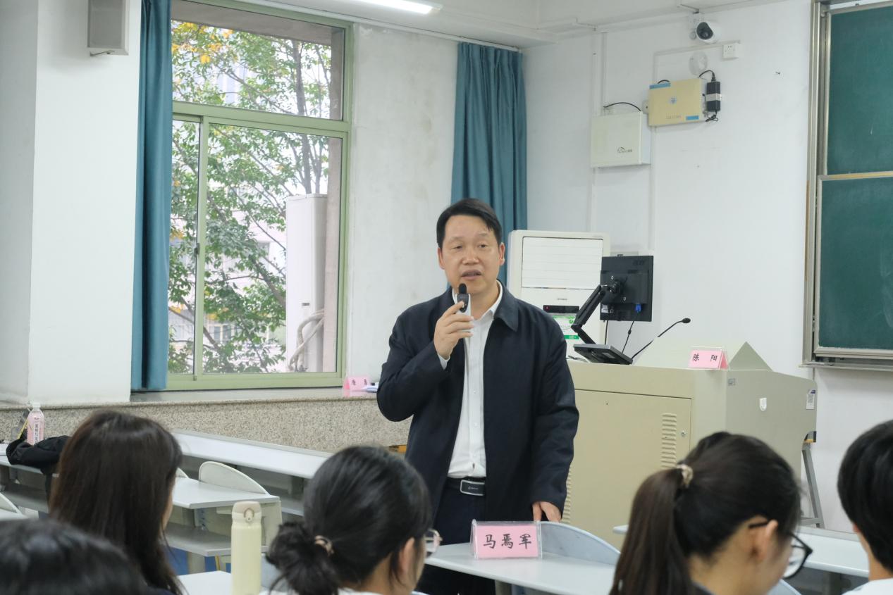 座谈结束后,马焉军一行到教室现场观摩由浙江省人民检察院第一检察部四级高级检察官陈阳讲授的课程,并与学生进行深入交流。同学们现场向马主任请教检察官职业规划、就业方面的困惑以及实习实践等问题。马主任耐心细致地对问题逐一进行了回答,他强调,学生在校期间应加强理论知识学习,实习实践中不断提升专业技能水平,努力实现理论与实务知识的融合。同时,马主任表示会尽最大可能为学生们创造更多的实习机会。
