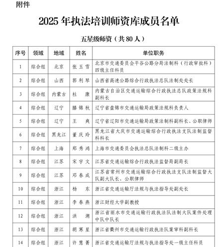 近期,交通运输部法制司公布了2025年交通运输部执法培训师资库成员名单。成人动漫 李春燕副教授入选交通运输部执法培训师资库,并被交通运输部评为五星级师资。
