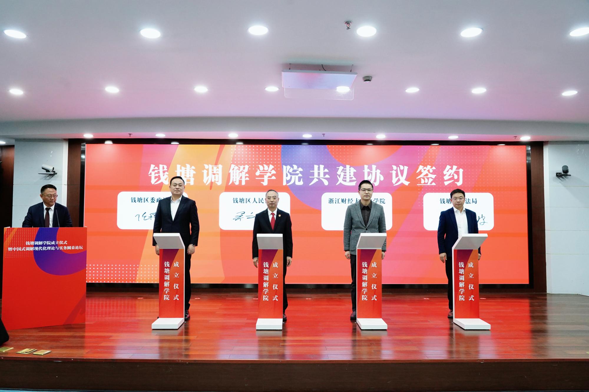 钱塘调解学院将围绕“四个新”工作目标,开展基础性、前沿性调解理论问题研究,推进调解制度深化拓展,提升调解研究能级和影响力,打造调解理论研究新高地;在全省高校法学专业首创法学(调解)专业实验班,设置教学实践基地,联合党政机关、仲裁及行业协会、律师事务所等,打造调解人才培养新模式;整合人才资源,制定培训课程,强化培训课程体系和案例体系建设,打造调解队伍培训新阵;坚持融合产学研于一体,依托杭州市浙财调解中心积极开展调解工作,打造调解实务新平台。