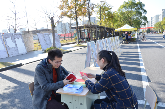 工作人员向全校同学发放新版的《中华人民共和国宪法》手册,弘扬宪法精神,建设法治校园,并邀请成人动漫