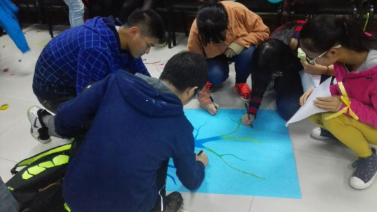 “我们要制定战略!”“联盟!”纷纷这样喊着。这个游戏每个小组既要有自己的一套策略,又要保护女生。更加促进了一个小组的归属感,也快速的达到了活跃班级氛围的目标。然后每个小组分别做了“快乐传播”的活动。