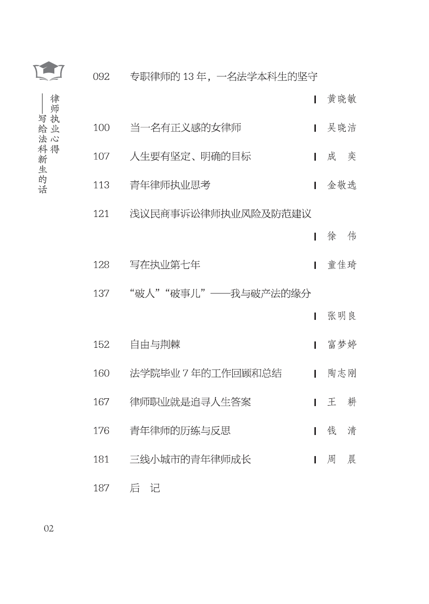 学生的职业规划具有启发性和指导性,值得有志于从事律师职业的大学生细细品味。”