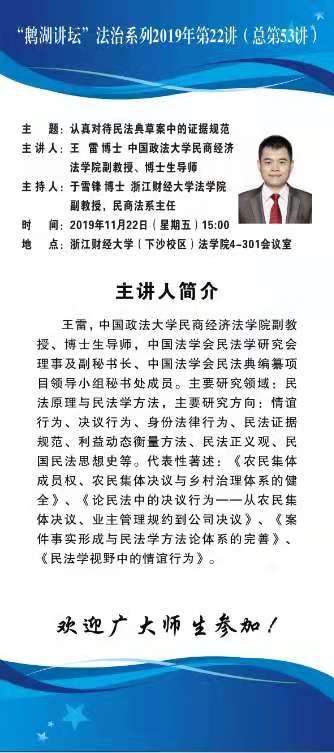 “鹅湖讲坛”法治系列2019年第22讲(总第53讲)中国政法大学民商经济成人动漫 王雷副教授