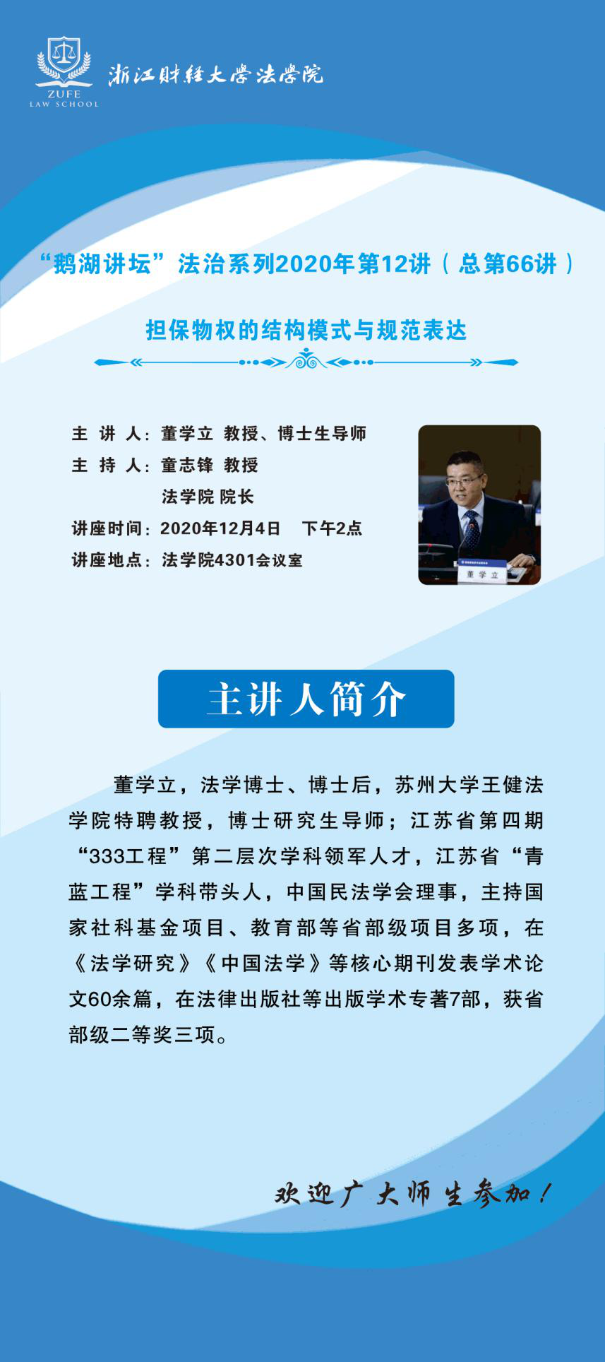 “鹅湖讲坛”法治系列2020年第12讲(总第66讲)苏州大学王健成人动漫 董学立教授