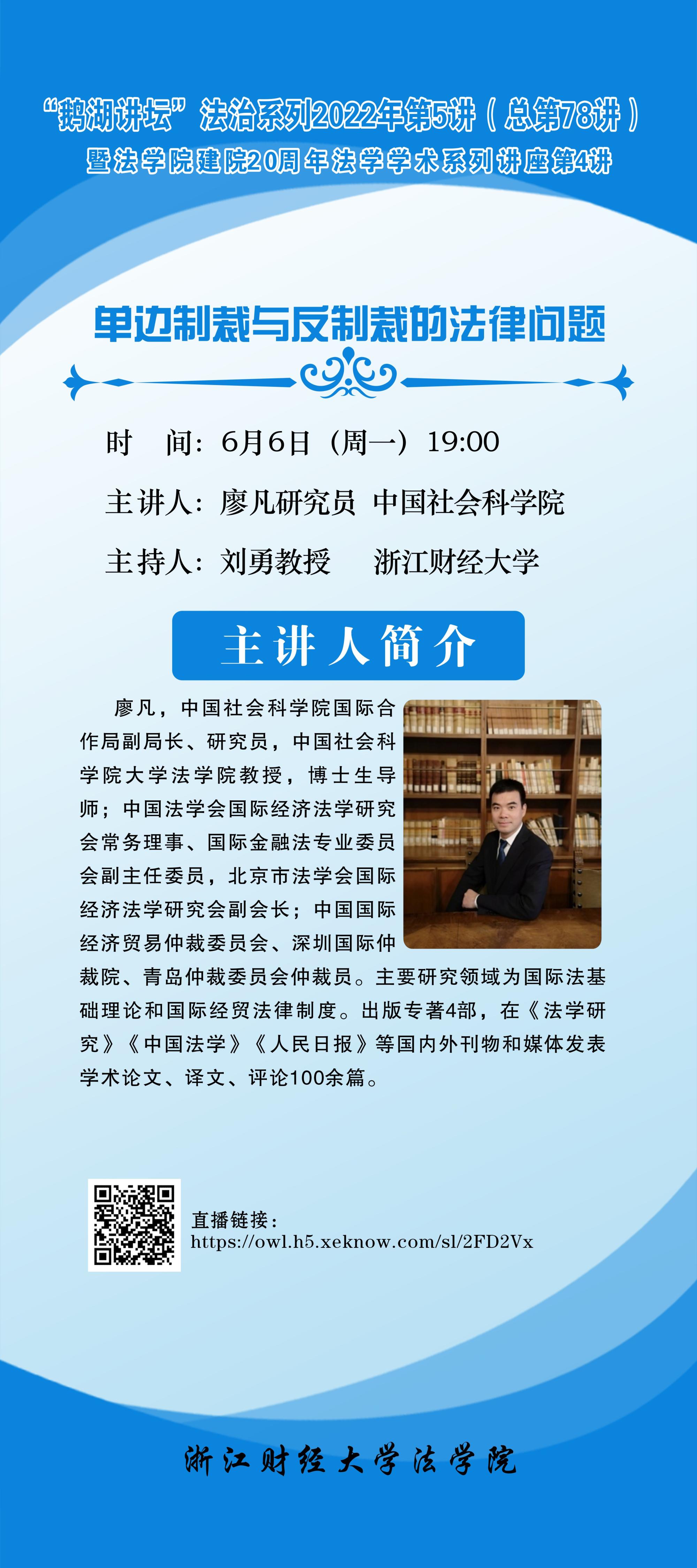 “鹅湖讲坛”法治系列2022年第5讲暨成人动漫 建院20周年法学学术系列讲座第4讲廖凡研究员