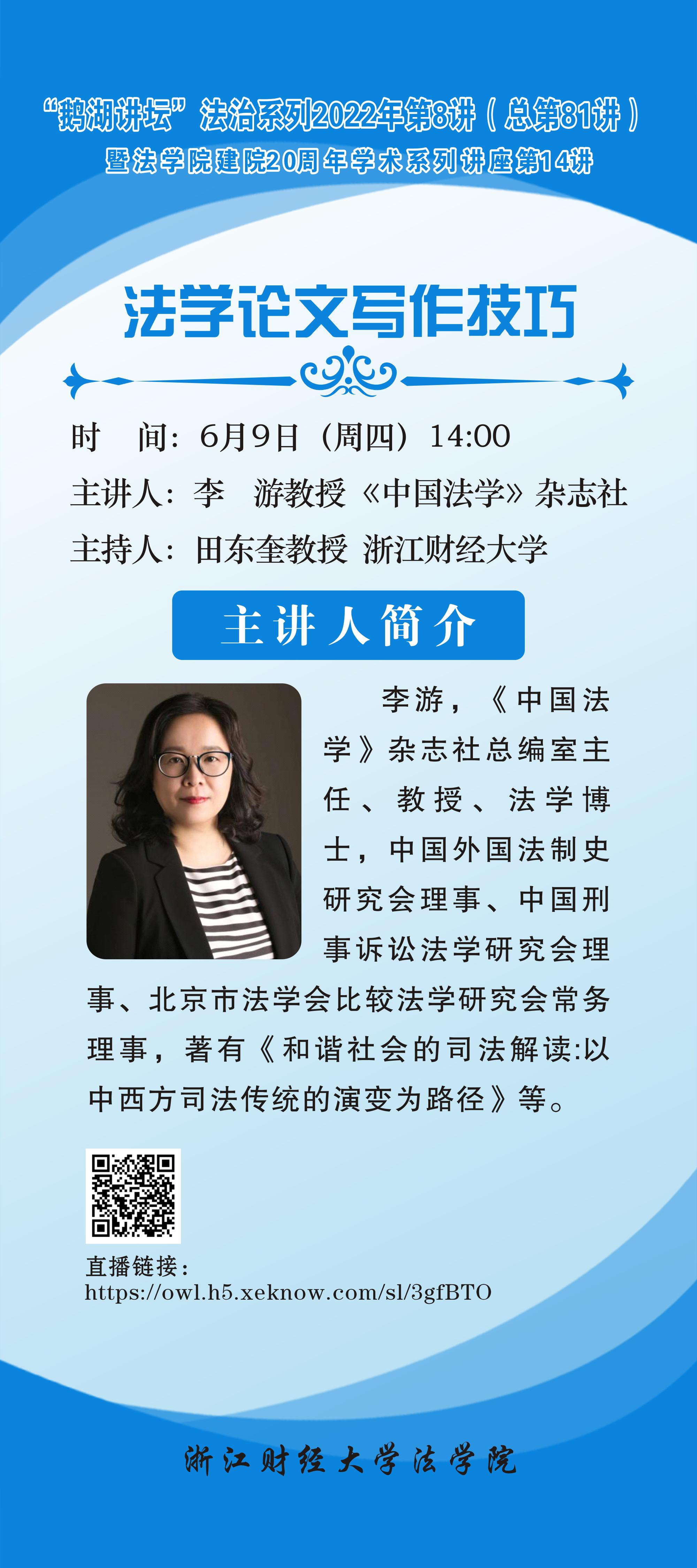 “鹅湖讲坛”法治系列2022年第8讲暨成人动漫 建院20周年学术系列讲座第14讲李游教授