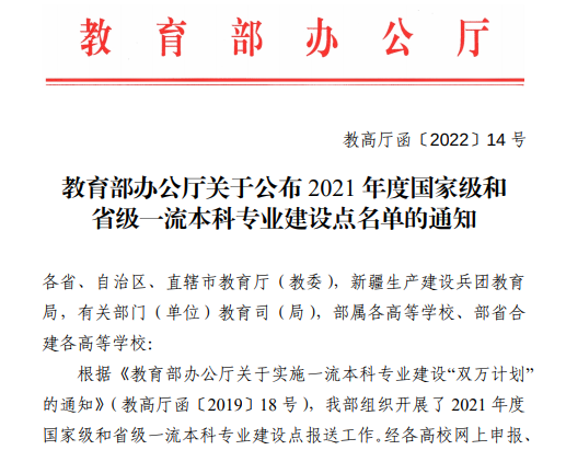 近日,根据《教育部办公厅关于公布2021年度国家级和省级一流本科专业建设点名单的通知》(教高厅函〔2022〕14号),成人动漫 下设的“法学”和“社会工作”2个专业均获批2021年度国家级一流本科专业建设点,实现国家一流本科专业全覆盖。自教育部启动一流本科专业建设“双万计划”以来,为持续提升本科人才培养质量,继续打造高水平本科专业,学院始终坚持“以本为本”,牢固树立人才培养中心地位,不断优化培养方案,加强课程建设...